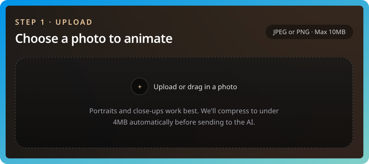 We've invested heavily in tuning the AI for natural, subtle movement. Clear, well-lit portraits produce the best results. If you're not happy, our refund policy has you covered.